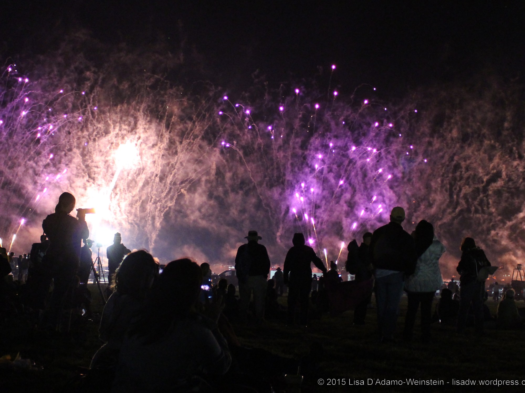 Fireworks and the 4th of July are an obvious summer pairing. A not so obvious pairing is fireworks and hot air balloons. All of the photos here were taken at one one the most spectacular fireworks displays I have ever had the pleasure to witness — the opening day fireworks at the Twinkle and Glow at the 2014 Balloon Fiesta in Albuquerque, New Mexico. In a previous posting, I shared pictures from our own hot air balloon ride with RainbowRyders. We went a few nights later with friends to see the night launch of the balloons. The winds were too fast for the balloons to take off, but the fireworks display made up for the disappointing launch. I hope you enjoy a few of the fireworks captured by me and my trusty Canon.